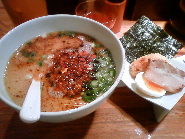 豚骨スープに辛味噌とマー油が入った香ばしい味.