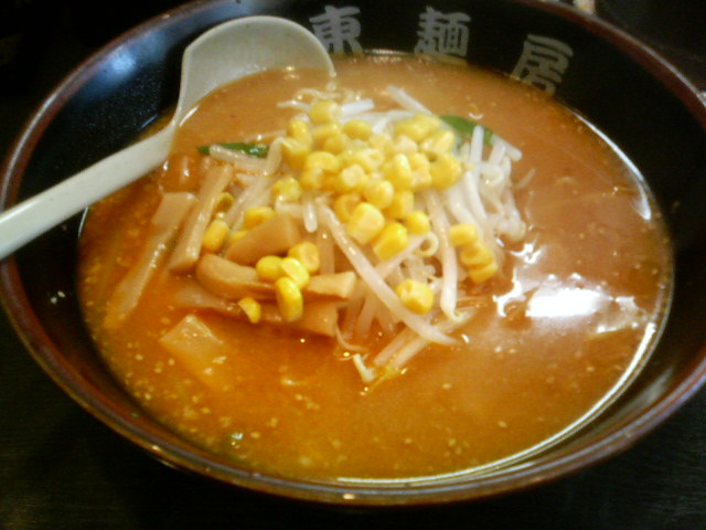 もやし・コーン・メンマなど具沢山の典型的な味噌ラーメンだった.