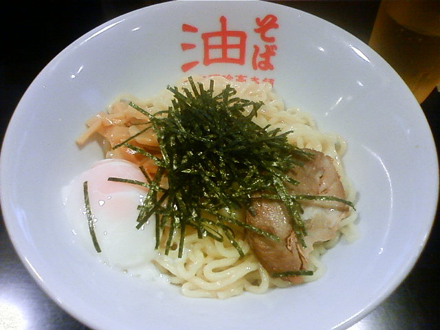 油そば(600円)+半熟卵(100円)を食べた.