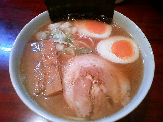 スープはシンプルな豚骨・魚介ベースの醤油と思われる.